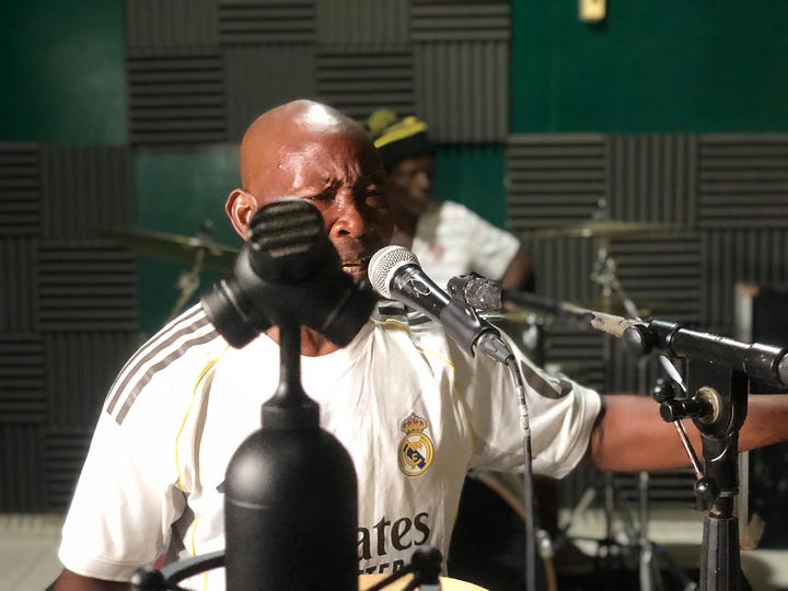 My first recording featured three men — Timo, Ja and Jeff — who turned up at the studio’s. The singer, Jeff, recorded four of his own compositions songs fusing Guinean, Creole and Gabonese influences. It was a beautiful introduction to my musical journey here.